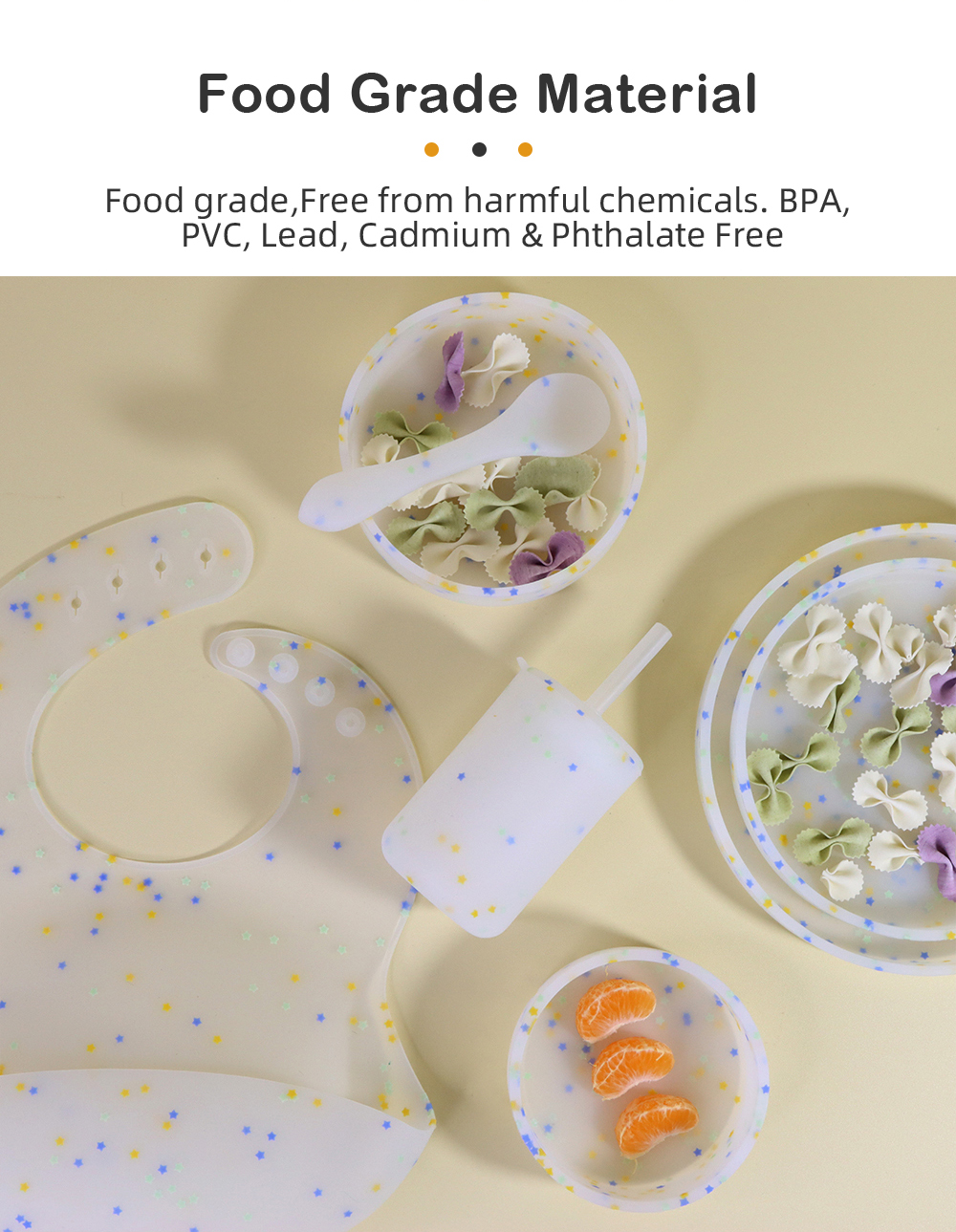 CONCEPTION UNIQUE, FACILE À MANIPULER : Notre set d'alimentation pour nourrissons bien conçu présente un design translucide avec un motif étoilé. Son design unique en fait un élément spécial de la table.