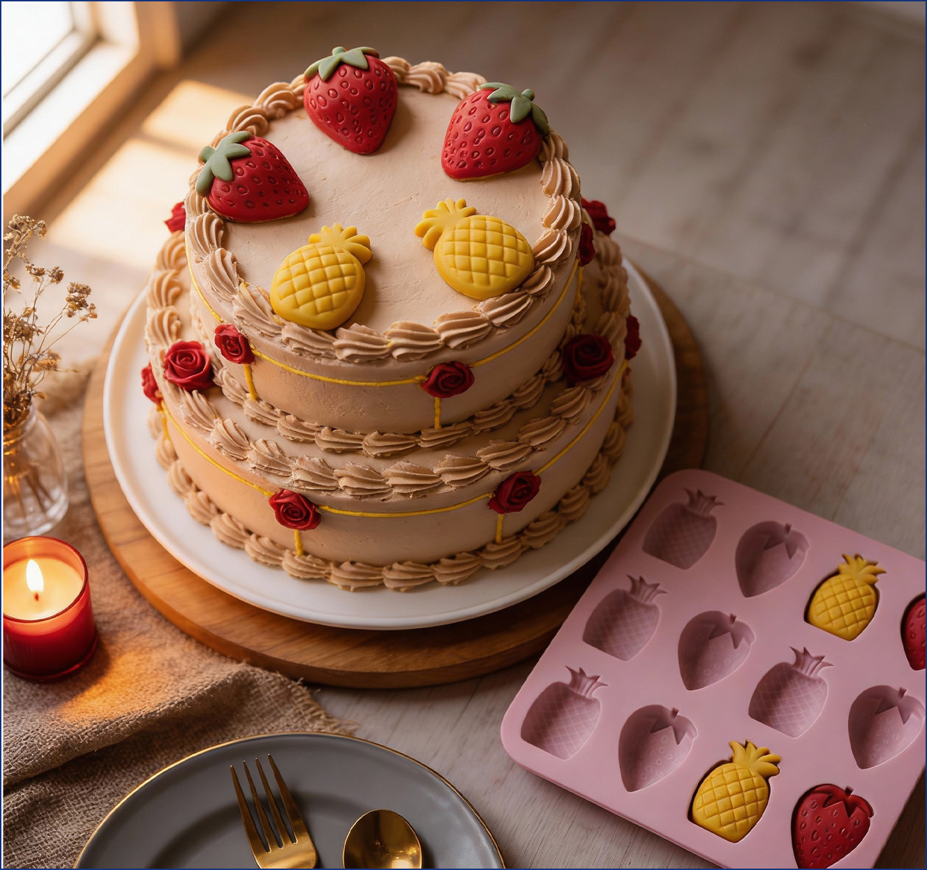 This 3D fruit silicone mold set features two popular summer shapes: strawberry and pineapple. The detailed cavities create realistic fruit-shaped desserts, adding a tropical touch to everyday treats and festive occasions. Ideal for summer parties, themed events, and gift preparation.