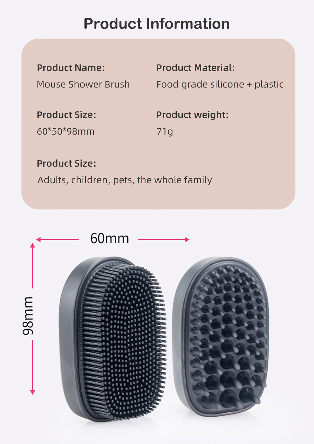 - Para un agarre seguro y cómodo, especialmente durante las duchas enjabonadas, nuestro estropajo de silicona para el baño presenta un mango ergonómico con una superficie texturizada. Este diseño antideslizante mantiene el estropajo firmemente en la mano, lo que permite una rutina de baño controlada y agradable.