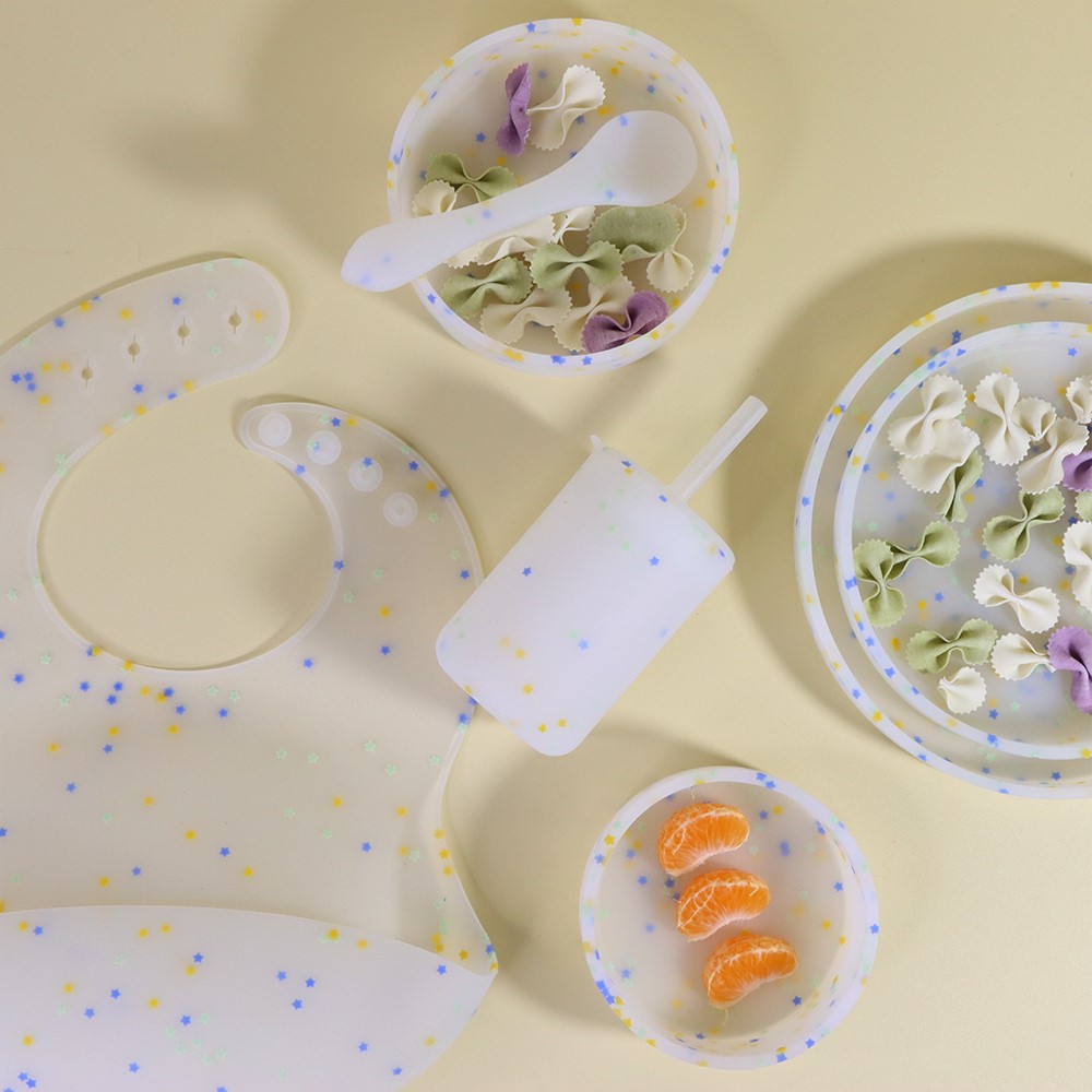 1. 종합 수유 세트: 이러한 키트에는 그릇, 숟가락, 접시, 컵, 턱받이 등 아기의 수유에 필요한 다양한 품목이 포함되어 있으며, 모두 아기의 수유에 적합하도록 설계되었습니다. 세척하기 쉽고 식품용 실리콘과 같이 아기에게 안전한 소재로 만들어진 제품이 대부분입니다.