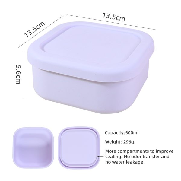 This square lunch box is made of high-quality silicone material, featuring a leak-proof design and microwave-safe functionality for convenient heating. With a capacity of 500ml and dimensions of 13.5×13.5×5.6 cm, it offers a single-tier structure that is easy to carry and store. Ideal for office workers or outdoor activities, this lunch box combines practicality with a simple and elegant design, making it a perfect solution for daily food storage.