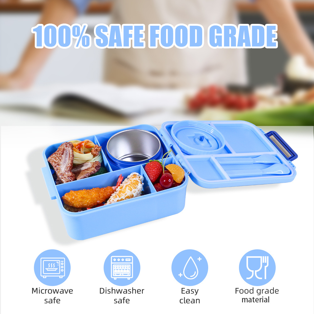 Made from premium BPA-free PP plastic and paired with a stainless steel insulated jar, this reusable lunch container is odorless, non-toxic, and resistant to oxidation and corrosion. Its drop-proof shell makes it sturdy for everyday use, while kid-friendly latches and a durable handle allow easy carrying and independent use for school-age children.